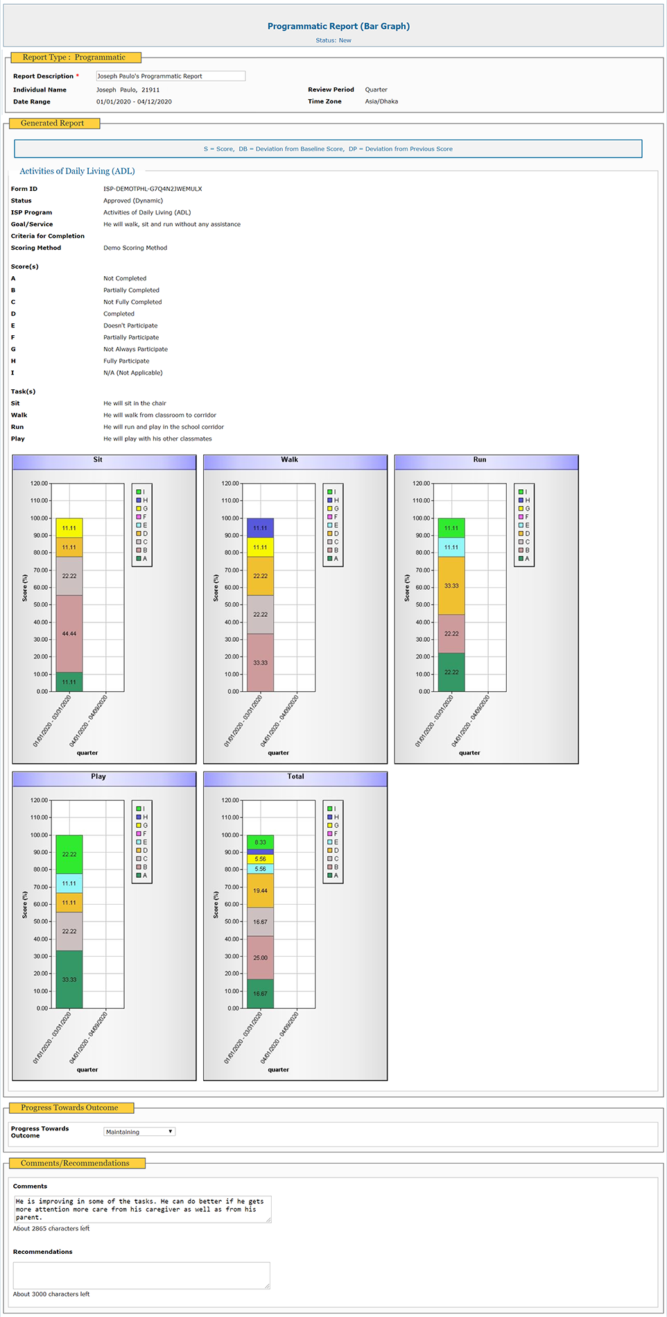 Therap’s Individual Support Plan (ISP) tool provides a platform to track the progress of an individual. Agencies can use this module to create a person-centered service plan or Individual Education Plan (IEP) to track the improvement of specific skills of an individual. ISP allows service providers to score specific tasks or skills based on the performance of the individual.